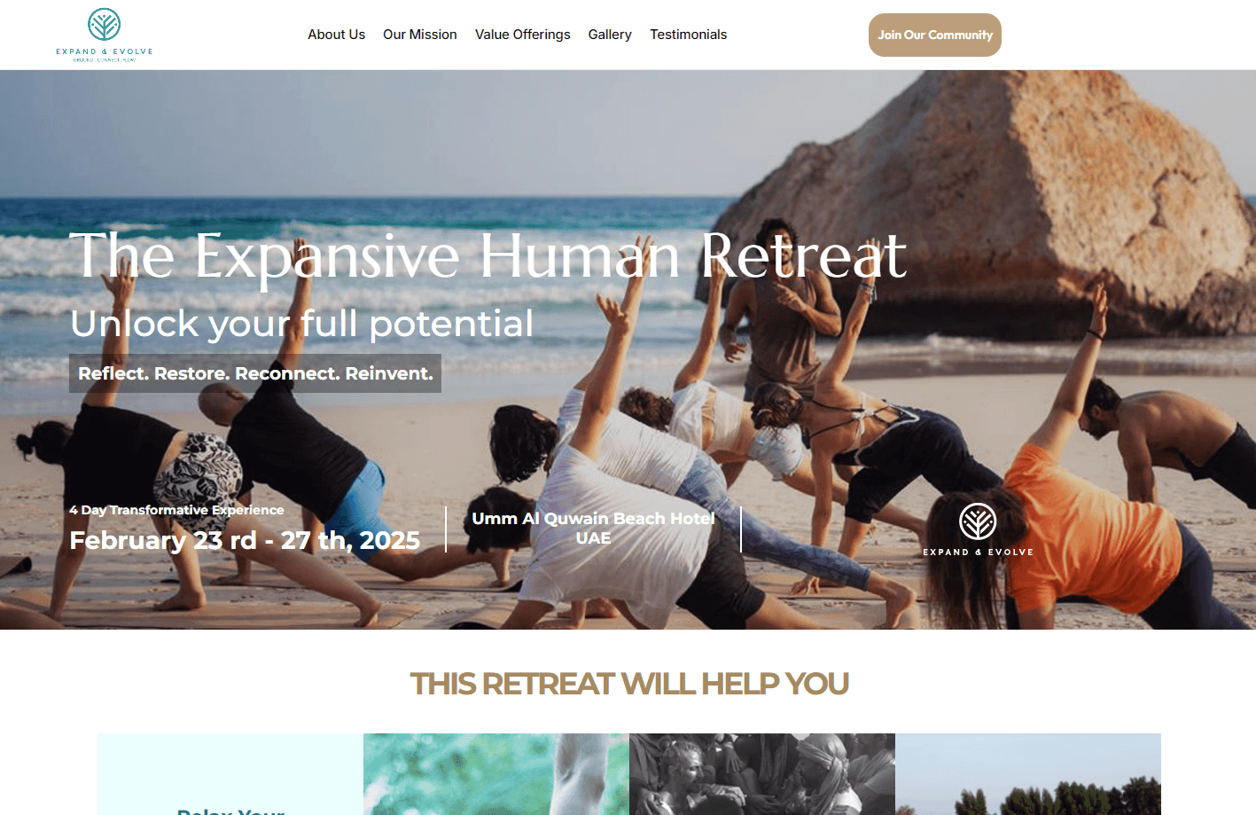 We kicked off the project by immersing ourselves in the Expand and Evolve philosophy. Our team conducted in-depth discussions to understand their core values, target audience, and desired user experience. We focused on crafting a clear narrative that would showcase what Expand and Evolve stands for, emphasizing their unique offerings and the transformative experiences they provide.